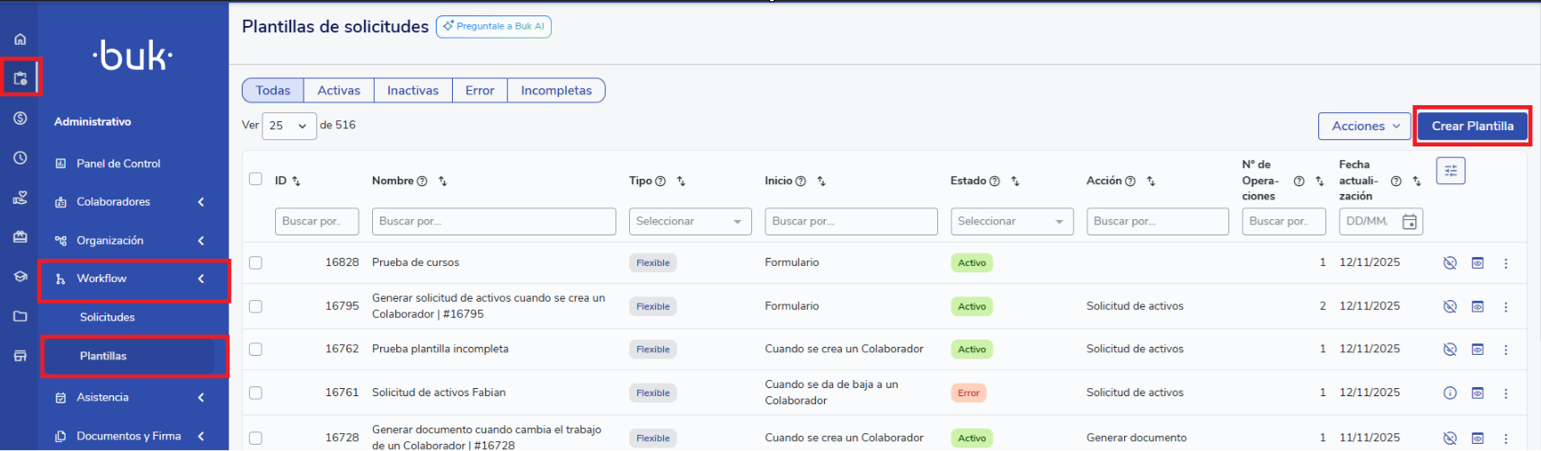 Once configured, the template will be in"Active", which means you can now use it to create requests. You can deactivate, modify, duplicate or delete it from the templates view.