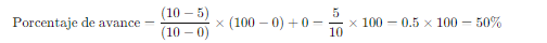 It is possible to create inverse scales. For example, if 0% progress corresponds to 10 real units and 100% corresponds to 0 units, the calculation of the progress percentage is performed inversely, since the unit value decreases as the progress percentage increases. If a progress of 5 units is entered, the progress percentage would be calculated as follows:
