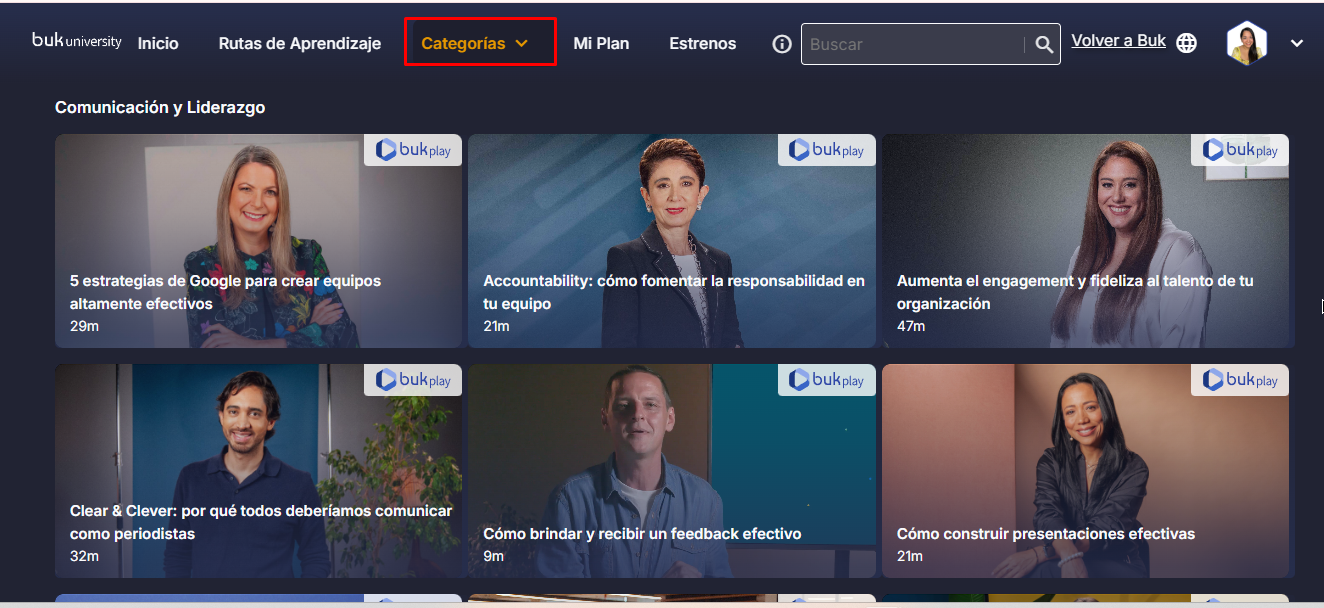 section. Here you’ll see different topics or content areas.Click on a category to view the associated courses. Then, select the course you want to start, just as you would from the Home section.