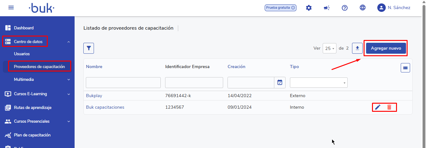 This article aims to guide users through the process of adding, editing, and deleting training providers and instructors in the LMS platform. It is intended for users with the role ofsuper administratororadministrator, who have permissions to manage this information. Creating providers and instructors is essential for proper traceability in training programs and reporting. It is important to note that registered instructors do not have access to the platform nor do they receive automatic notifications.