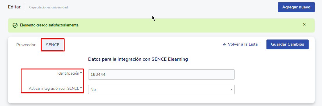 - Select “Yes” or “No” to activate integration with SENCE.