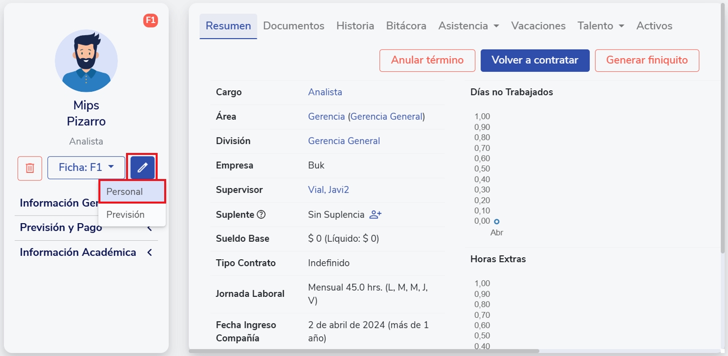 Once inside, click on the pencil icon and select the "Personal" option to edit the personal data.