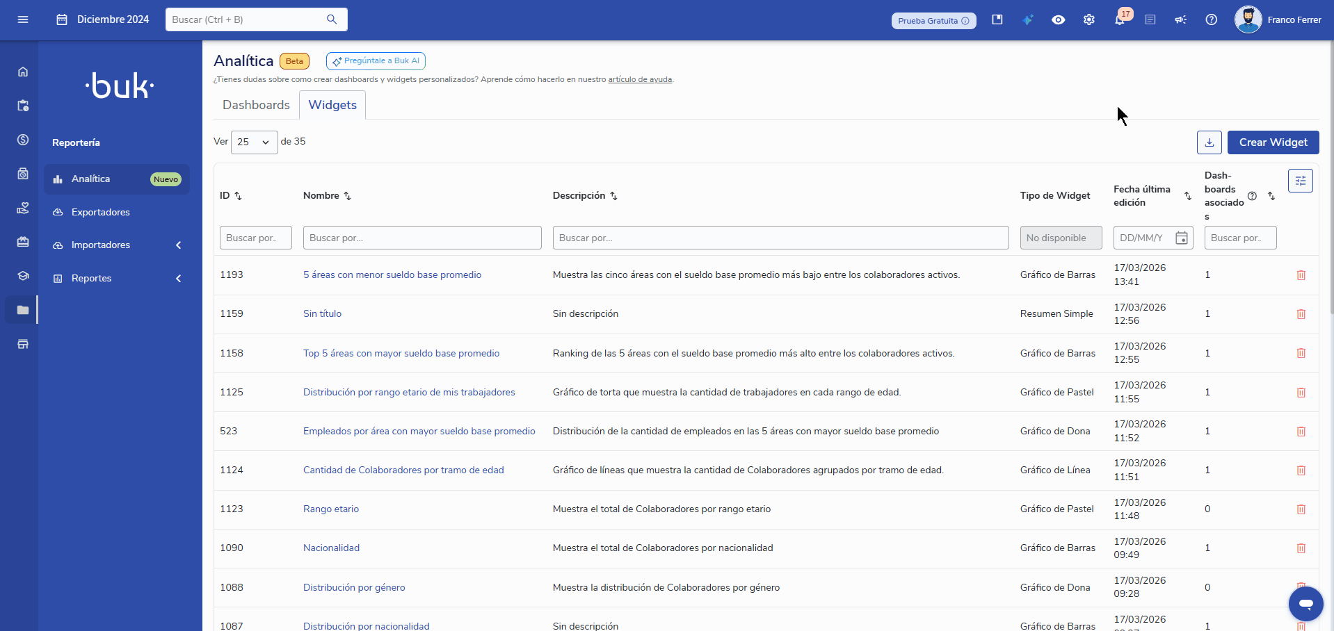 In theMore actionsbutton, you can export the full view inPDForPNGformat to share it outside the platform.Widget Creation - Buk AI