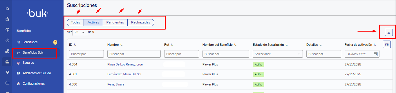 The purpose of this article is to detail the management of subscriptions to Beneficios Buk, including reviewing the integration status of the benefits for each employee.