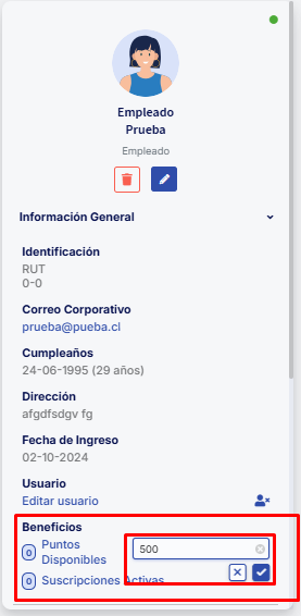 Puntos de beneficios: It is the amount that will be deducted from a collaborator's points balance when their benefits request is approved
