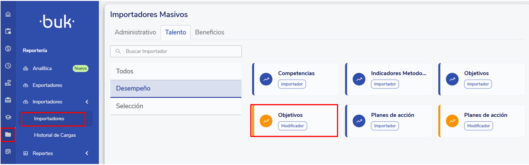 You can approve and activate multiple employees' goals at the same time from the Goals section or by using Buk's bulk import and modify tools. The importer is used to upload new goals and the modifier to update existing goals.