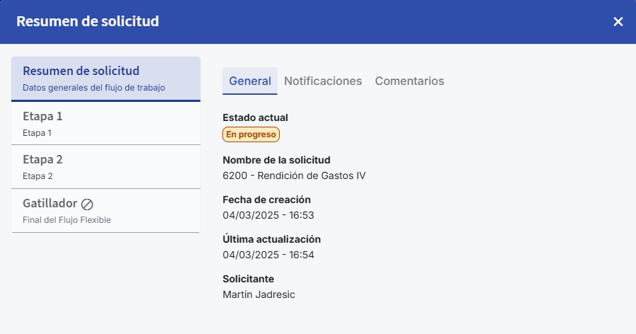 Para revisar el historial y seguimiento de una solicitud en un workflow, sigue estos pasos: