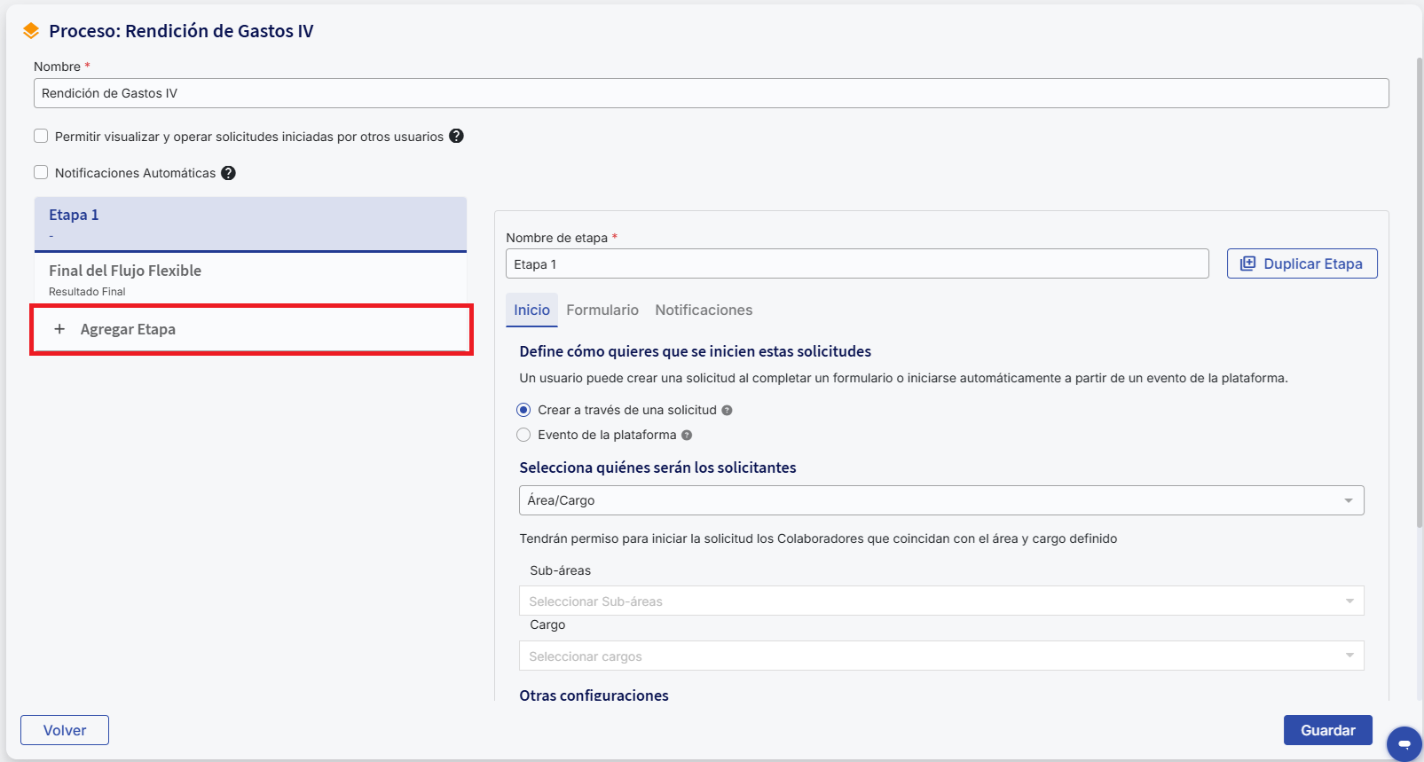 Recomendación: antes de eliminar una etapa, asegúrate de guardar su configuración para replicarla fácilmente.