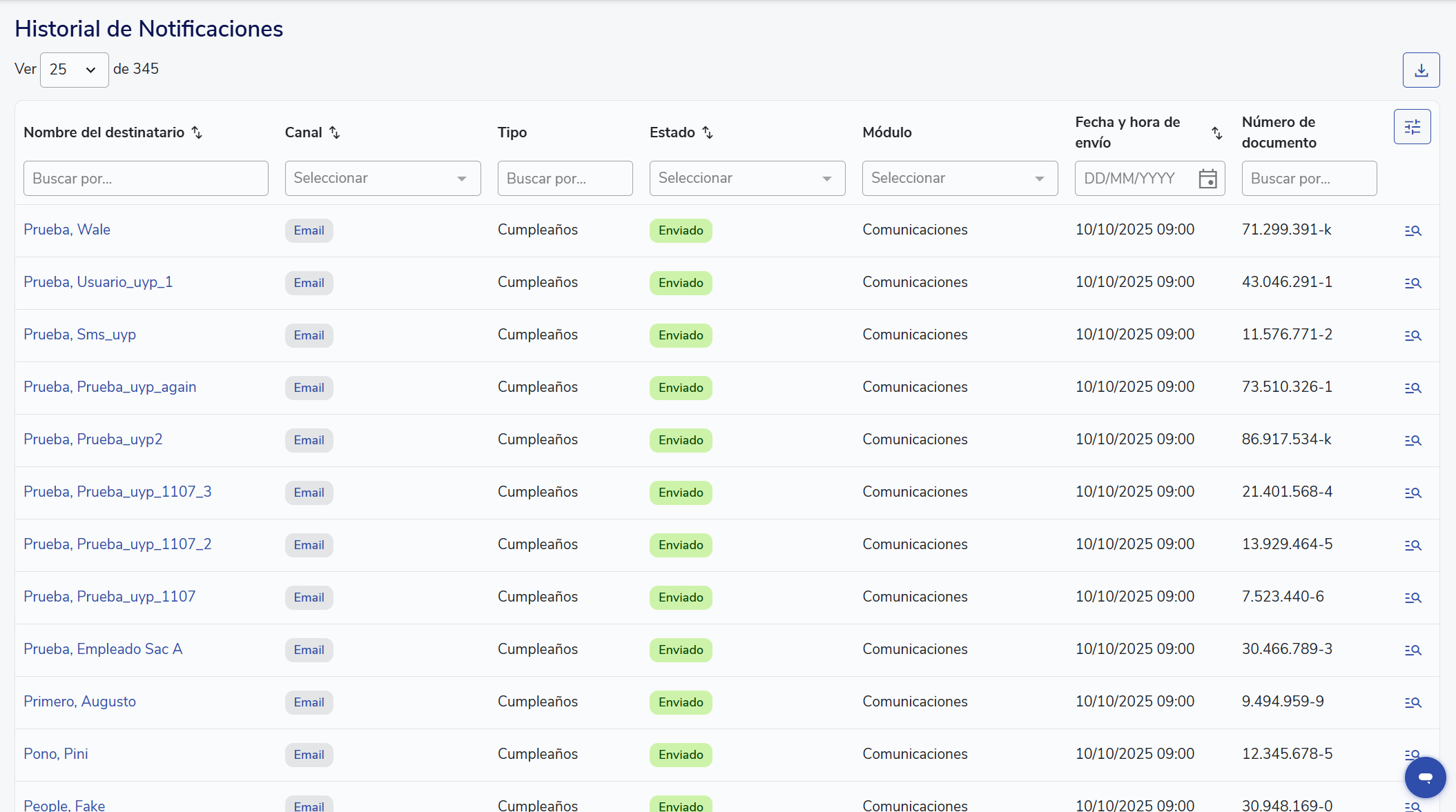 El Historial de notificaciones es una herramienta exclusiva para clientes con el plan Pro de Buk. Permite visualizar todas las notificaciones enviadas desde la plataforma en los últimos días (3 días para clientes con Plataforma Esencial y 30 días para clientes con Plataforma Pro), junto con su estado y detalles relevantes.