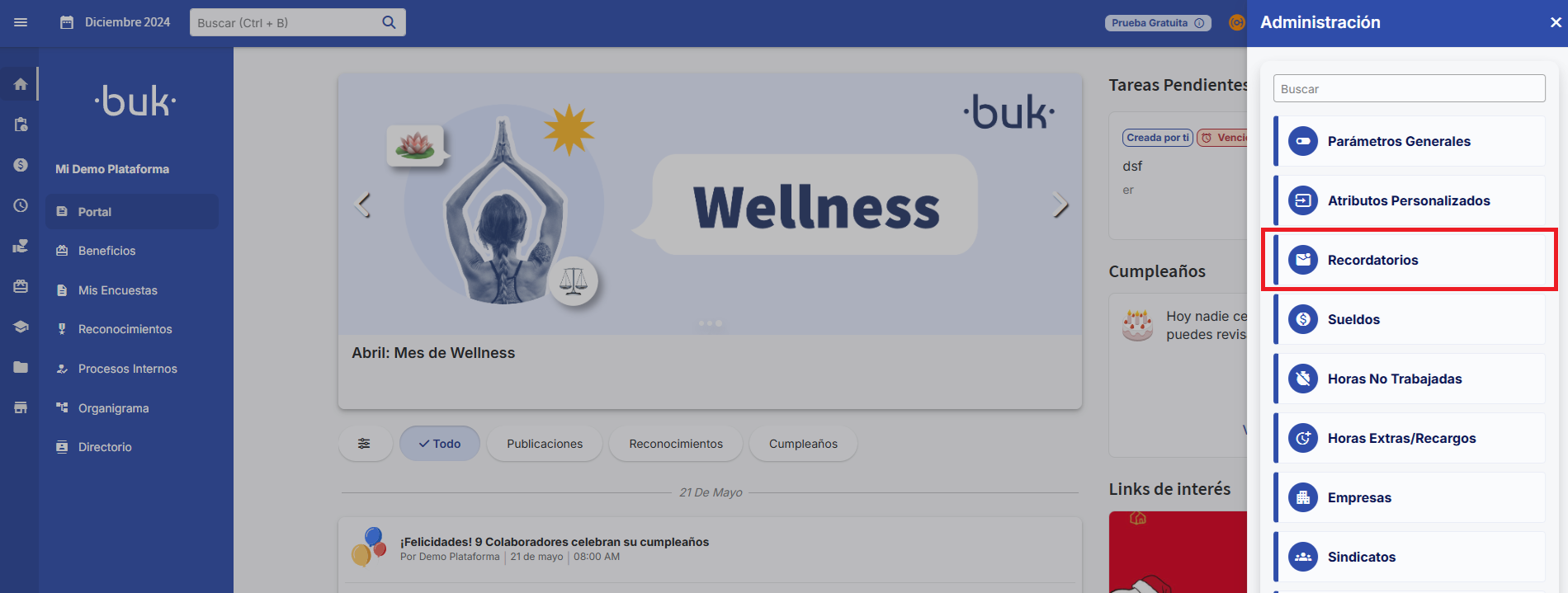 Puedes hacerlo activando el correo semanal de recordatorio desde el módulo de Administración.