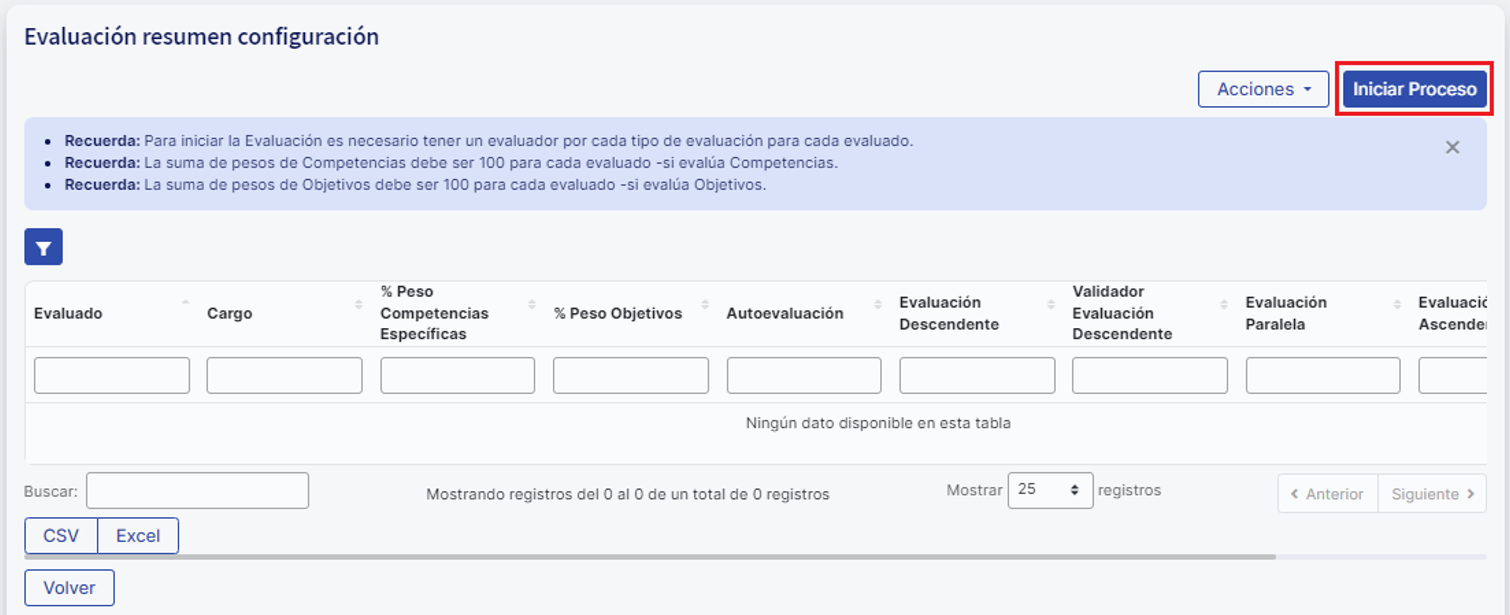 Una vez que todas las configuraciones estén correctas, podrás dar inicio al proceso de evaluación.