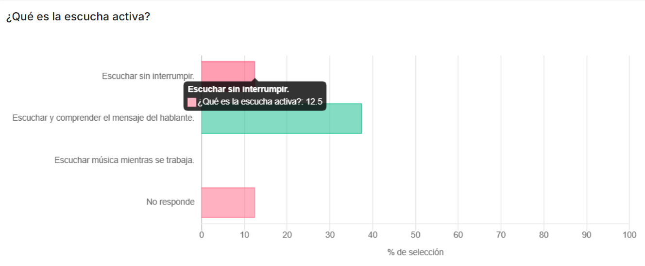 | Escuchar sin interrumpir | 1 | (1 / 8) × 100 = 12.5% |