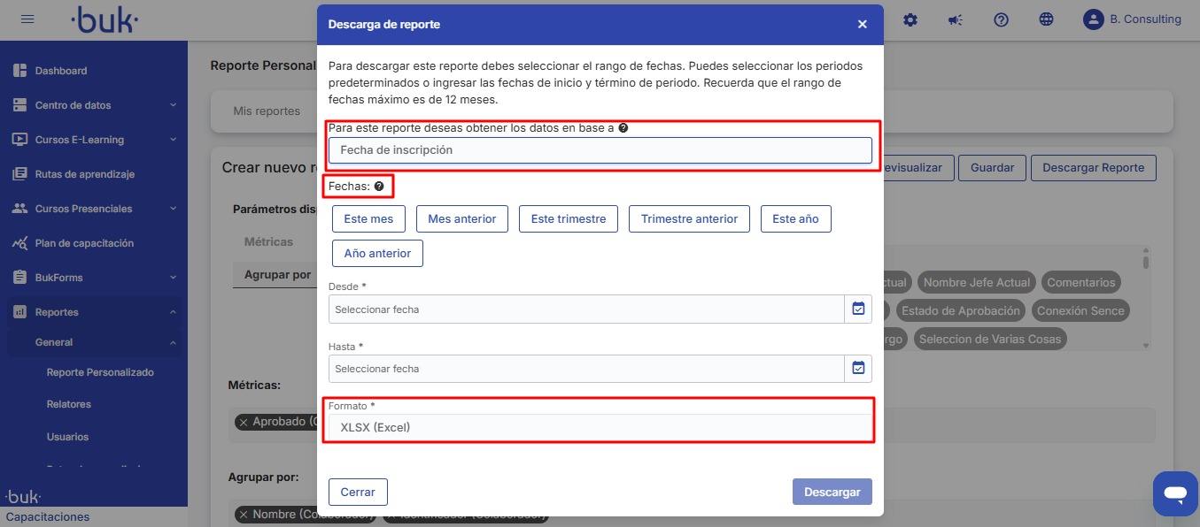 Si la previsualización es correcta, haz clic en “Descargar reporte”.