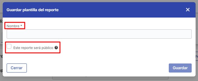 Deberás asignar un nombre al reporte y definir su nivel de visibilidad marcando o no el checkbox ✅ “Este reporte será público”: