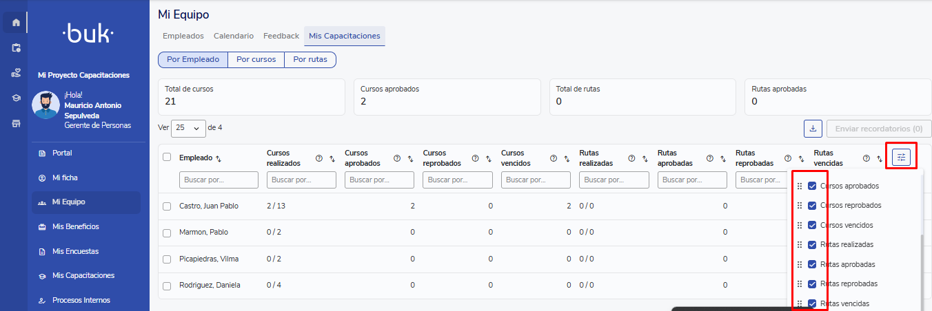Con esta funcionalidad podras monitorear de forma cercana el desarrollo de tu equipo y apoyar activamente su proceso de formación continua