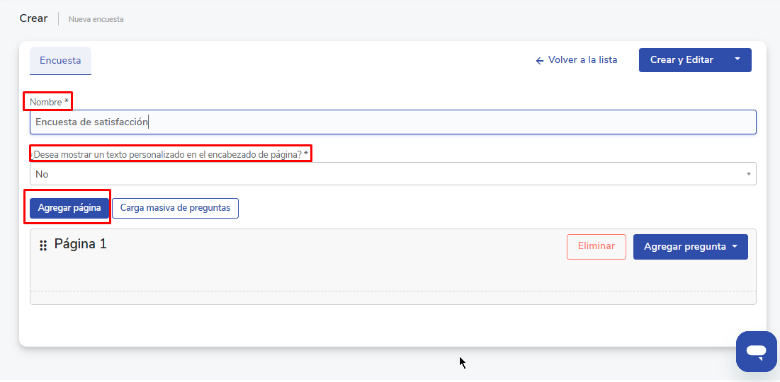- Haz clic en Agregar nuevo para iniciar una nueva encuesta.