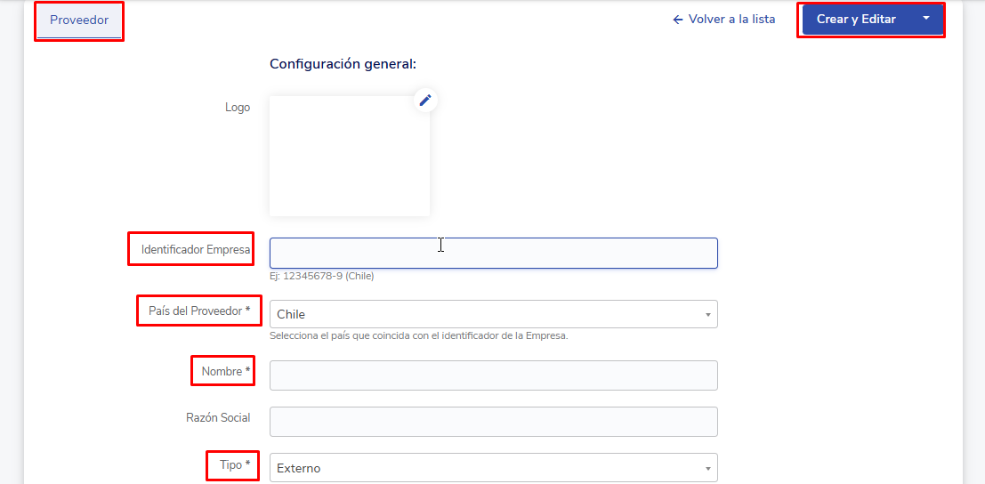 Haz clic en el botón Agregar nuevo. Completa los siguientes campos obligatorios en la pestaña Proveedor: