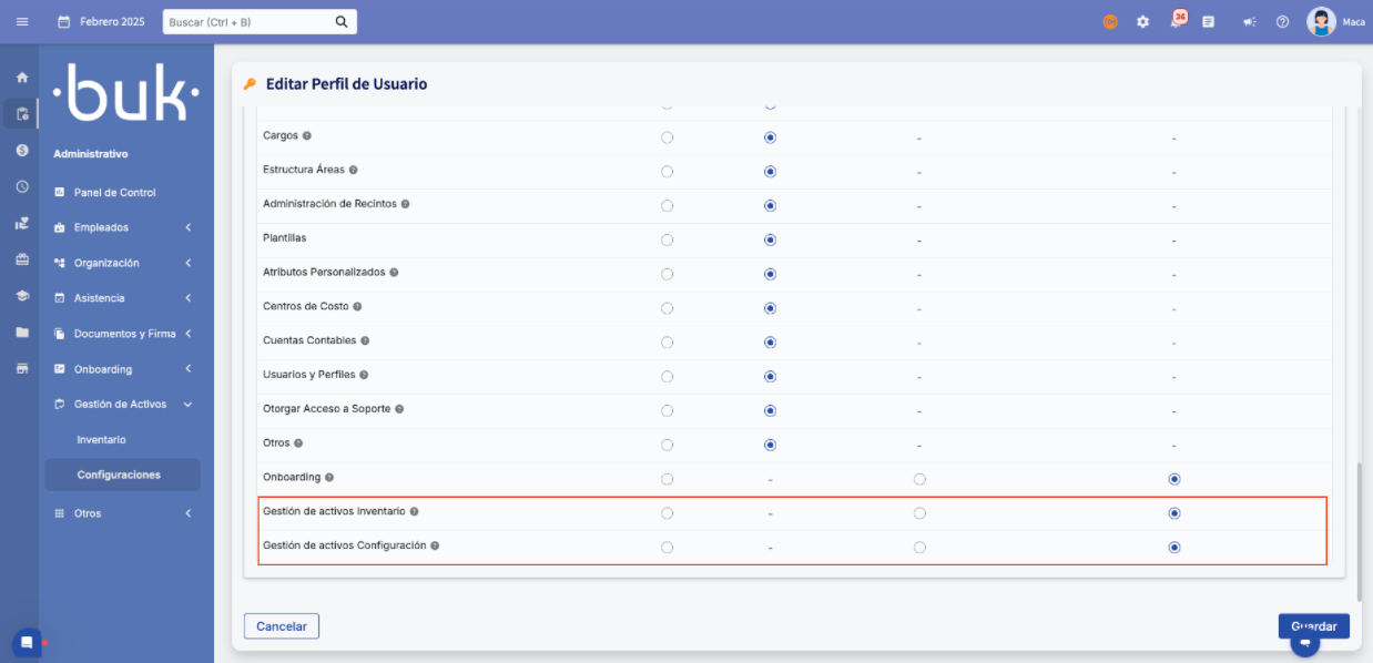 🖇️(⚙️Administración > 👥Usuarios y Perfiles > Pestaña Perfiles > [Selecciona perfil a asignar permisos] > Pestaña Administración)