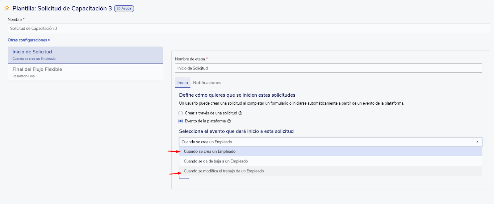 Está disponible solo para clientes que cuenten con el módulo de Workflow activo en su plataforma, y aplica únicamente para flujos flexibles gatillados por los eventos de creación o movimiento de colaborador.