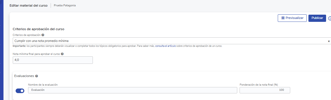 🧪Prueba antes de publicar: utiliza un curso de prueba para validar que la configuración funciona como esperas.