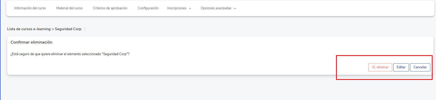 ⚠️ Esta opción no está disponible para cursos de Udemy, Coursera, Voxy o Bukplay. En su lugar, puedes hacer que el curso no sea visible desactivando todas sus instancias (dejándolas como no vigentes).