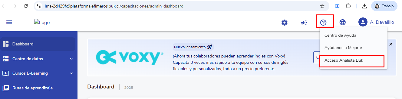 - En la parte superior derecha, haz clic en “Acceso Analista Buk”.