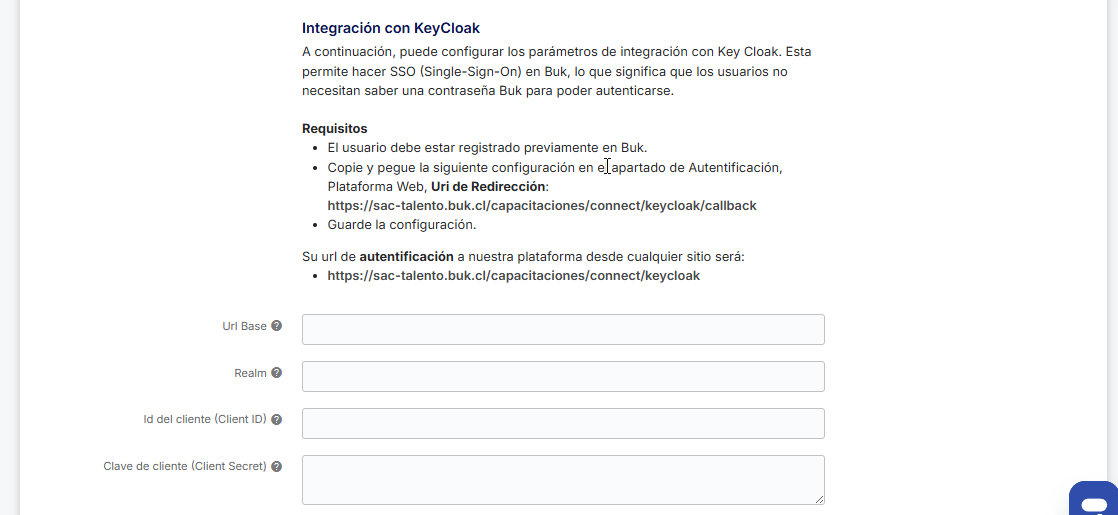Key Cloak: Integración que permite hacer SSO (Single Sign On) en el LMS. Esto significa que los usuarios podrán entrar con su clave de Key Cloak.