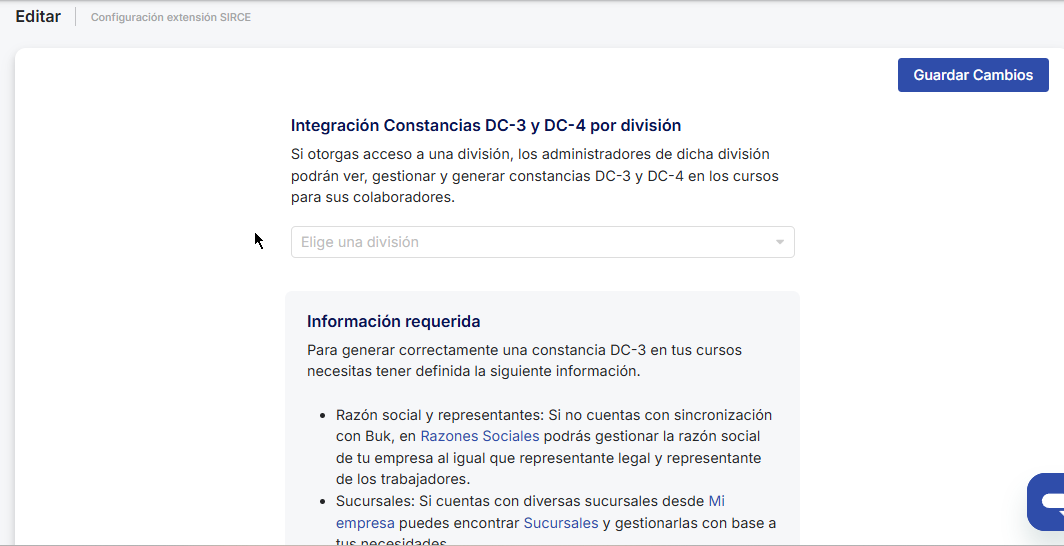 - Permite configurar los permisos correspondientes a los administradores a través de divisiones para que vean, gestionen y generen constancias DC3 y DC4 en los cursos.
