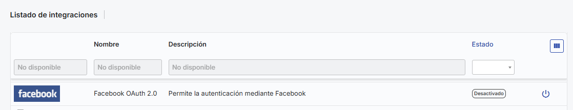 Facebook: Integración que permite hacer SSO (Single Sign On) en el LMS. Esto significa que los usuarios podrán entrar con su clave de Facebook.