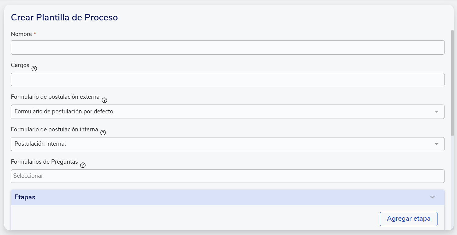 Puedes seleccionar las etapas de las que son parte y los cargos asociados a esta plantilla. Las plantillas solo podrán ser utilizadas en aquellos procesos de selección que coincidan con el cargo asociado a la plantilla. Si no seleccionas un cargo para una plantilla se podrá usar en todos los procesos.