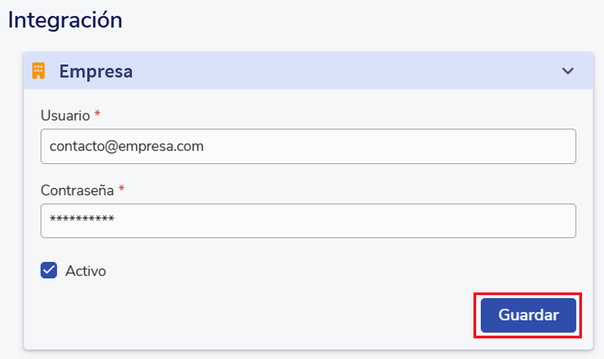 En la configuración de la integración está la lista de las empresas que se gestionan. Se debe seleccionar la o las empresas que se deseen activar, ingresar las credenciales del portal de empleos y guardar. Recordar que el Portal de Empleo solo permite una conexión simultánea por cuenta, por lo que se debe asegurar de cerrar sesión en el portal de empleo antes de confirmar la activación.