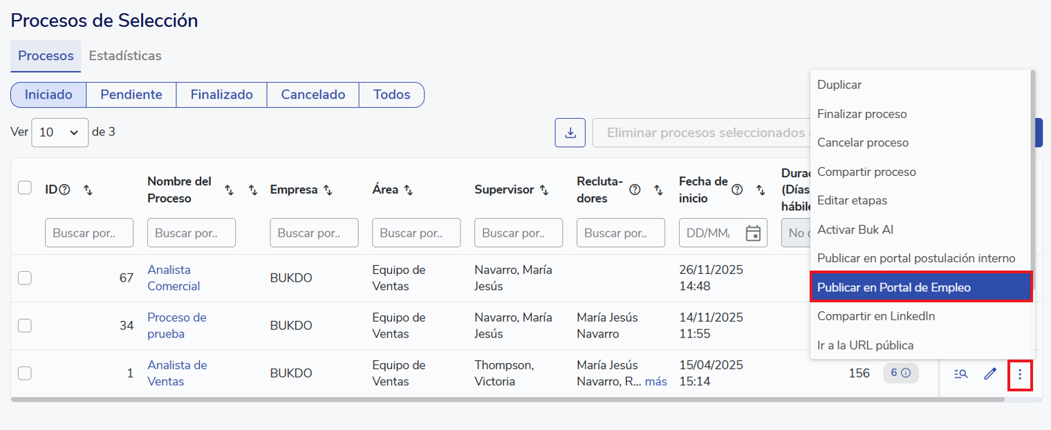 Importante: La actualización automática de candidatos se realiza cada 3 horas y crea la ficha del candidato, situándolos en la primera etapa del proceso de selección en Buk. También puedes realizar la actualización de forma manual.