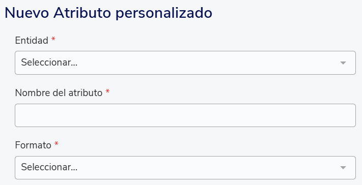 Dentro de esta vista, se puede crear un atributo con el botón "Crear Atributos personalizados".