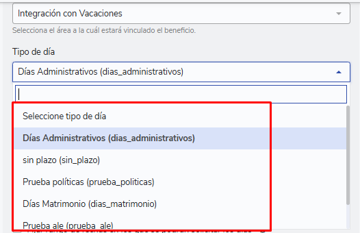 Es fundamental tener en cuenta que los beneficios con integración al módulo de vacaciones se relacionan directamente, por lo que es muy importante la correcta configuración previa de: