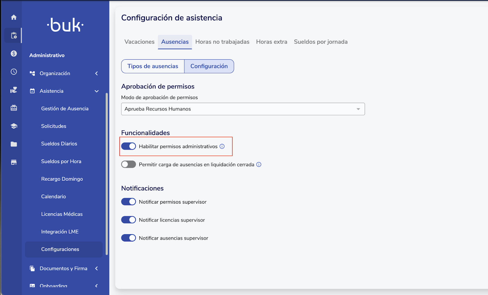 También pueden utilizar la opción de “Días administrativos” lo cual deberán activar desde Administrativo > Asistencia > Configuraciones > Ausencias > Configuración y activar la opción.