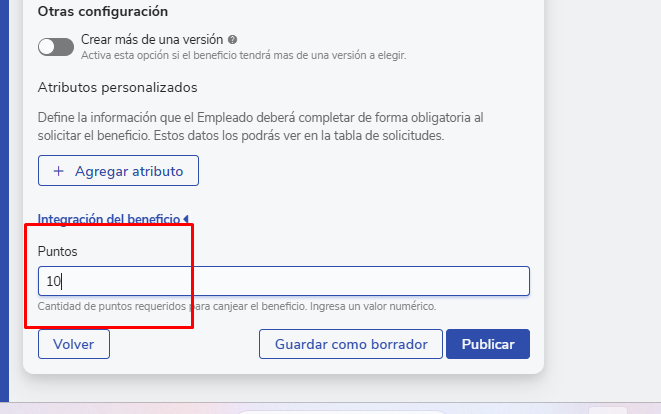 Creación de un beneficio con puntos