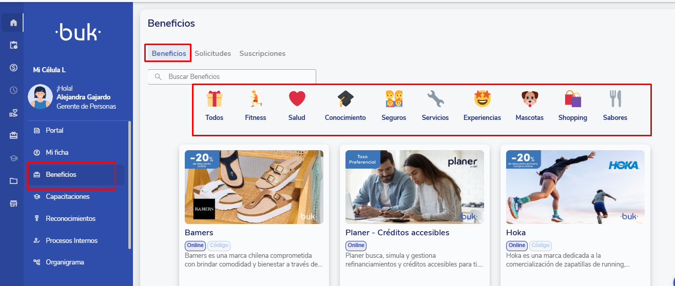 Beneficios, solicitud, Buk, sistema de puntos, aprobación, seguimiento.