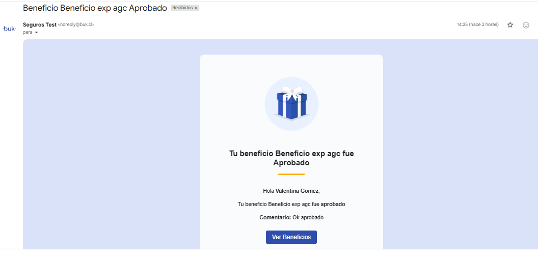 En caso de haber solicitado un beneficio con flujo de aprobación, además recibirás un correo notificando su aceptación.