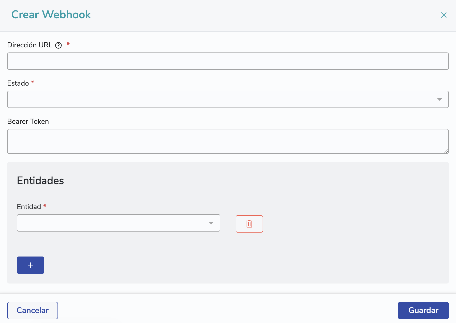 | Botón “+” | Permite agregar más entidades dentro de la misma configuración de webhook. | Buk |