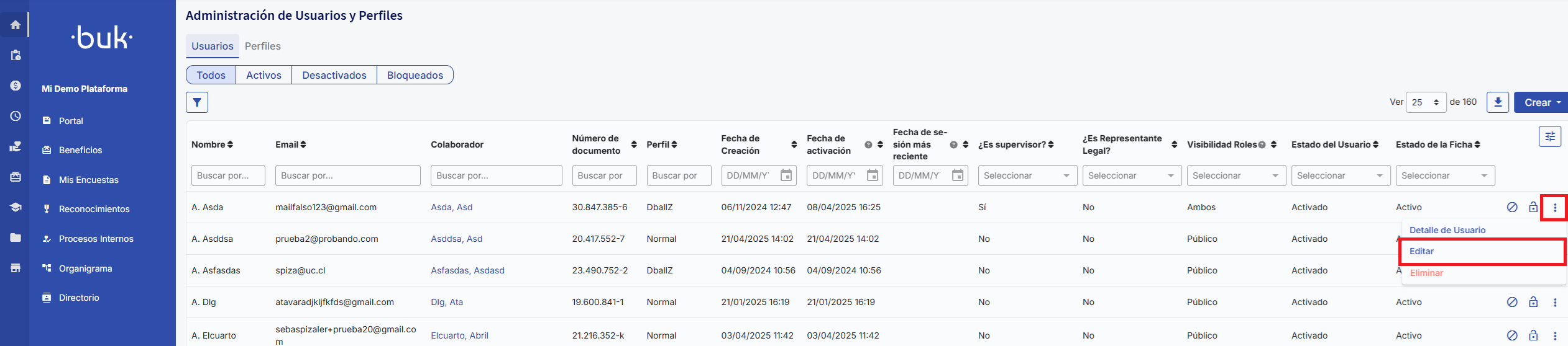 - Data de ativação:Corresponde à última vez em que o estado do usuário foi alterado paraAtivo