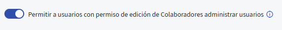 Alguns usuários podem ter permissão para editar ou criar colaboradores, mas não usuários. Para gerenciar esse comportamento, você pode modificar o parâmetro geral: "Permitir que usuários com permissão de edição de Colaboradores administrem usuários". Ao desativá‑lo, não verão a caixa de Criar Usuários. Isso se aplica à criação por meio da opção 2 (desde a ficha do colaborador) e 3 (durante a criação do colaborador).