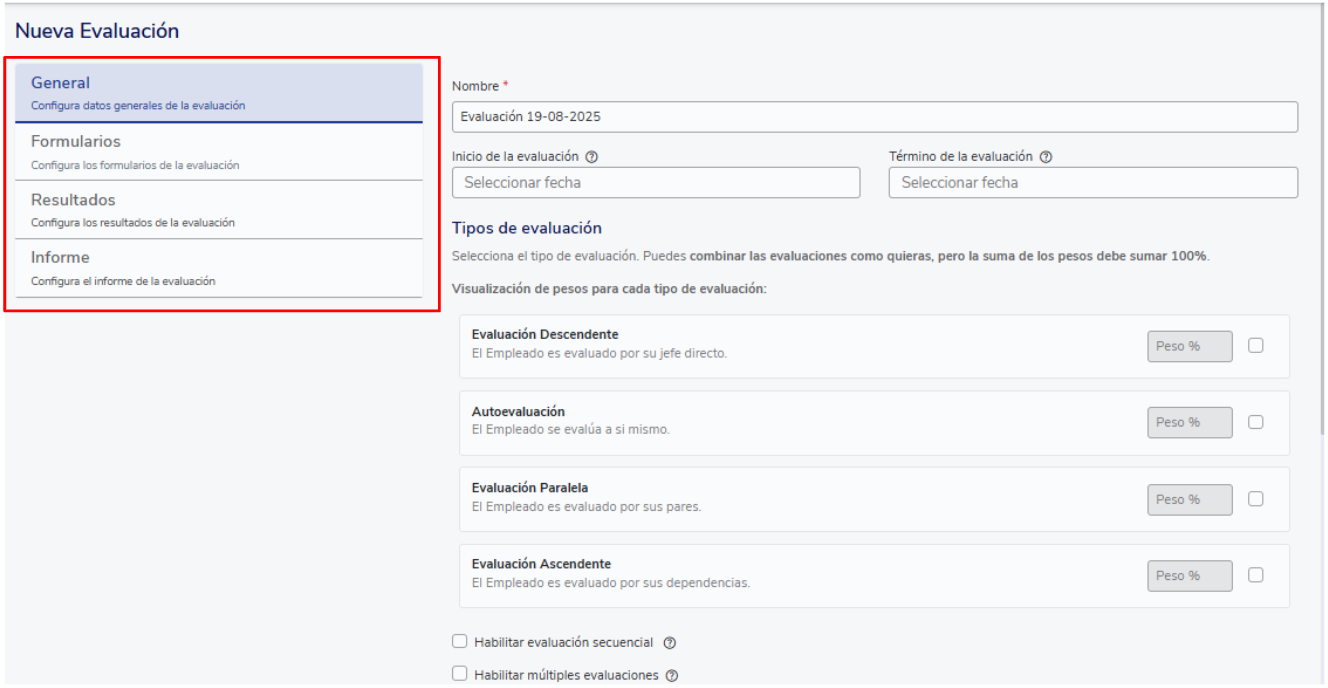 Após escolher uma dessas duas opções, será aberta a tela de configuração da avaliação de desempenho.