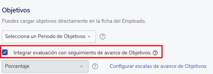 Esta configuração utiliza a escala percentual para avaliar os objetivos.