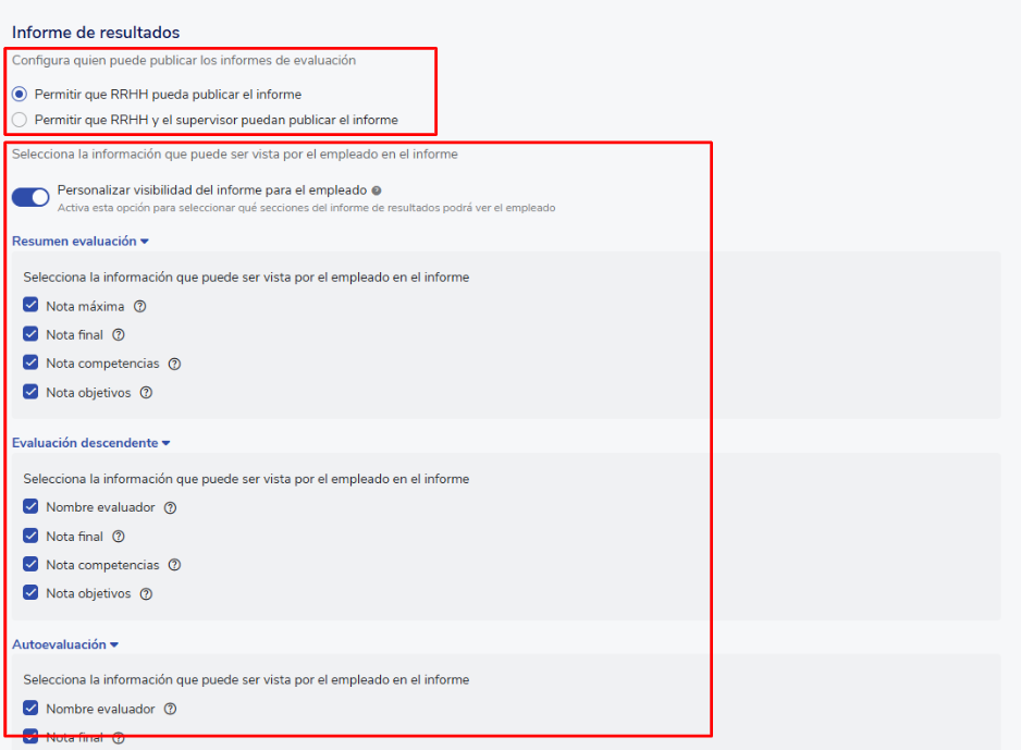 Se você editar a configuração da avaliação uma vez iniciada, asalteraçõesserão aplicadas de formaretroativa. Isso significa que, se já existirem avaliações publicadas, as alterações de visibilidade também serão refletidas nelas.