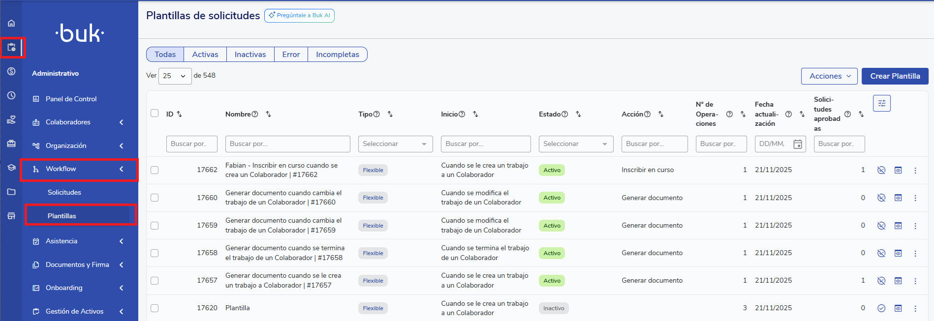 O que posso fazer na vista de modelos de workflow