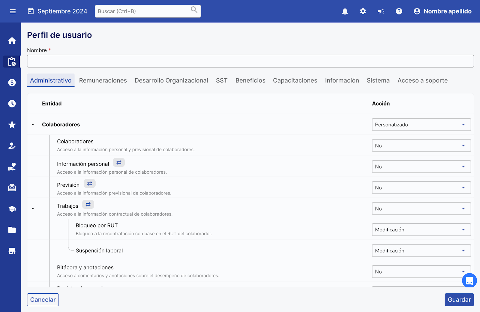 - Permisos:Configurações específicas dentro de uma Entidad que determinam qué elementos o procesos pueden gestionarse.