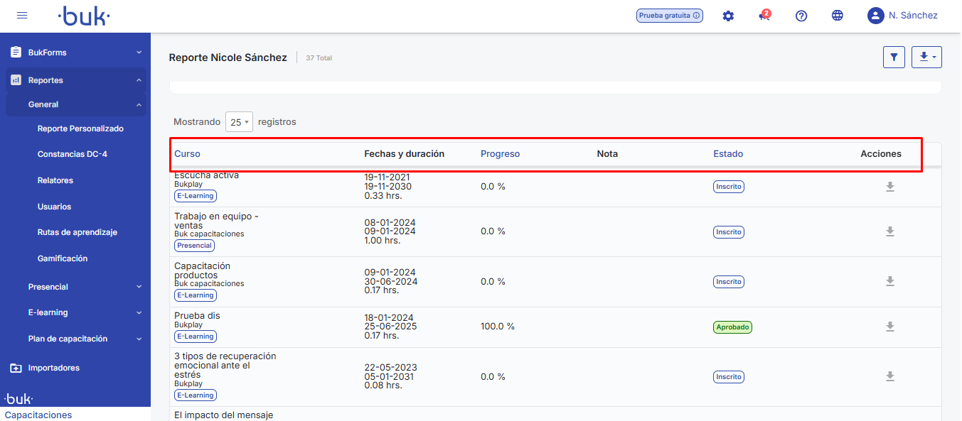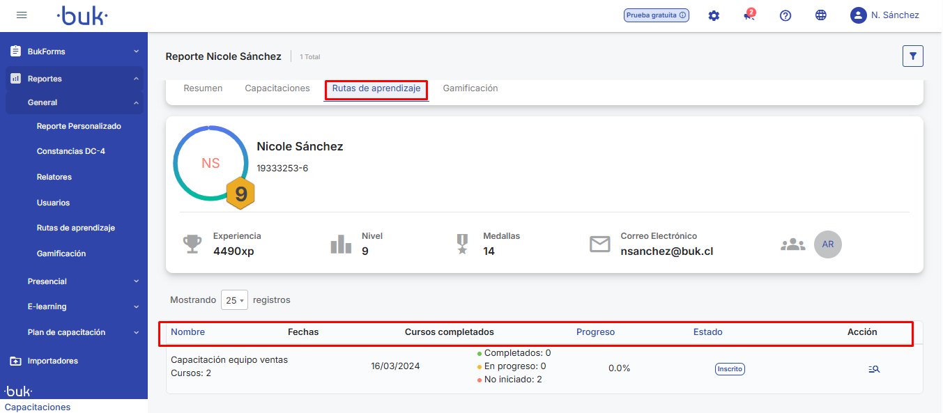 🔹Rotas de aprendizagem:Exibe o detalhe das rotas de aprendizagem nas quais o colaborador está inscrito, junto com: