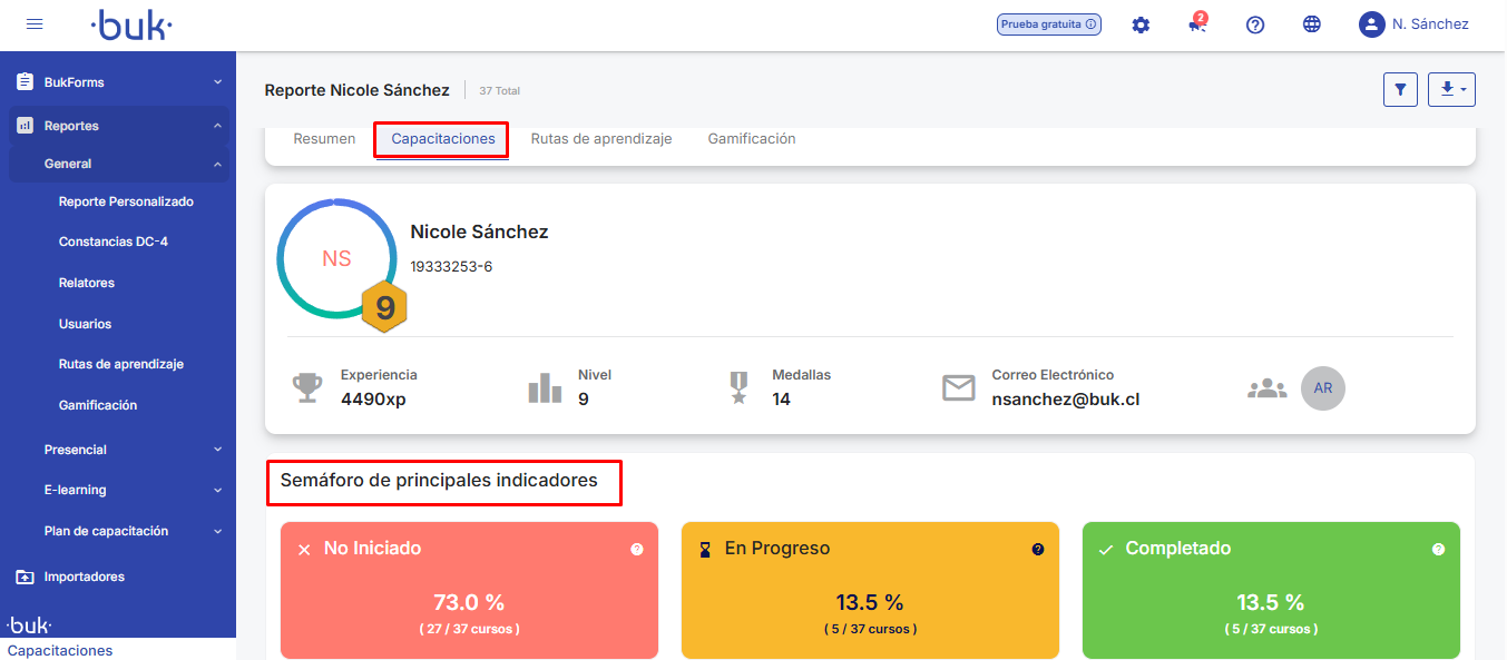 Este artigo tem como objetivo orientar os usuários na visualização do perfil detalhado de um colaborador dentro da plataforma, fornecendo informações sobre seu avanço em cursos, rotas de aprendizagem e desempenho em gamificação. É dirigido a usuários com os papéis superadministrador e administrador e permite obter um resumo completo do progresso formativo de cada colaborador.