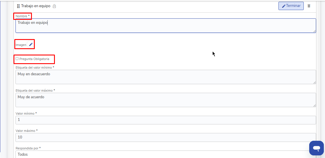 Cada pergunta pode ser configurada individualmente: