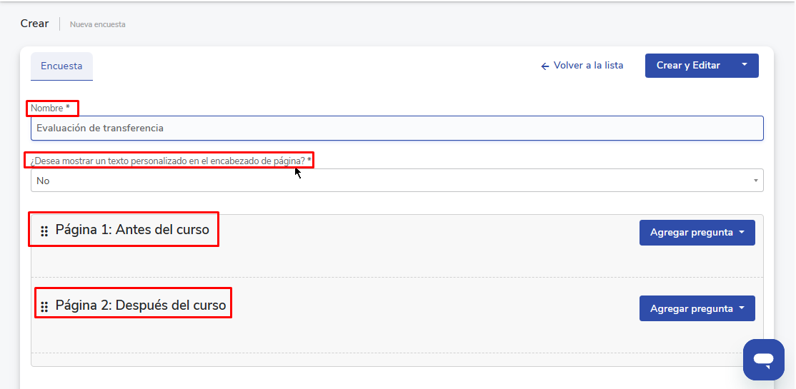 - Clique emEditarpara inserir o texto da pergunta no campo "Nome".